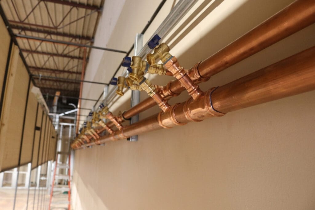 As you can probably guess, with the number of washing machines that would soon be installed in this space, there was going to be plenty of copper piping throughout.